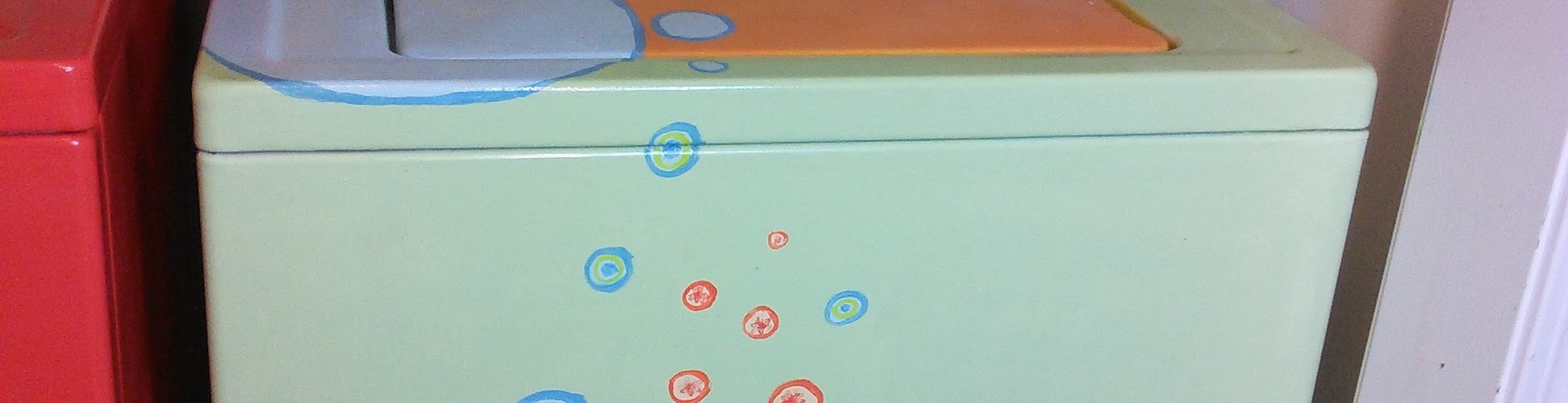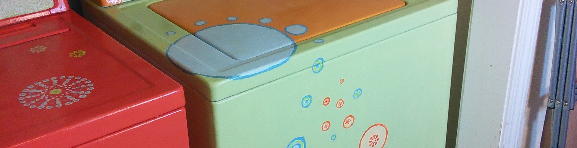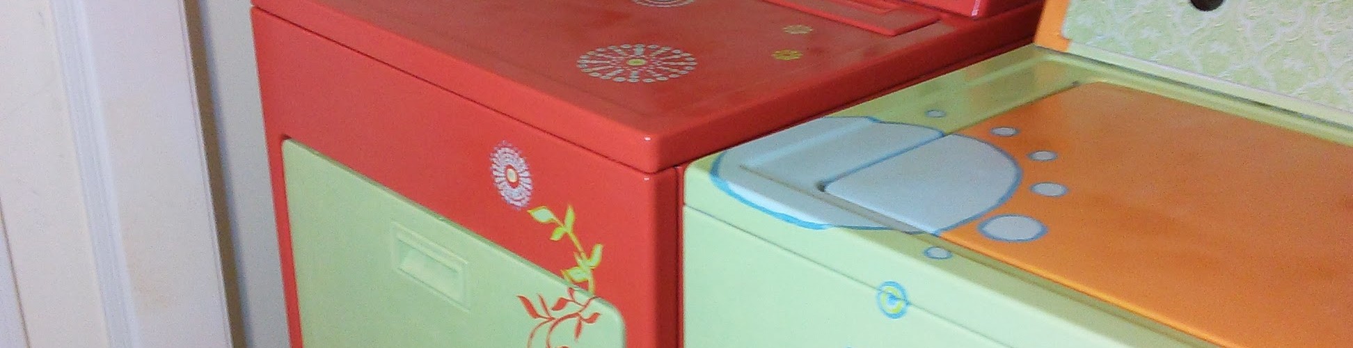 Of every little makeover I have ever done around my house this is my favorite. One day I was looking at my 15 year old washer & dryer and thinking how much i really hated looking at them. Suddenly I had a Pinterest inspired epiphany – paint them! I had bookmarked someone else’s photos a few months before and I had nothing better to do for the weekend so….